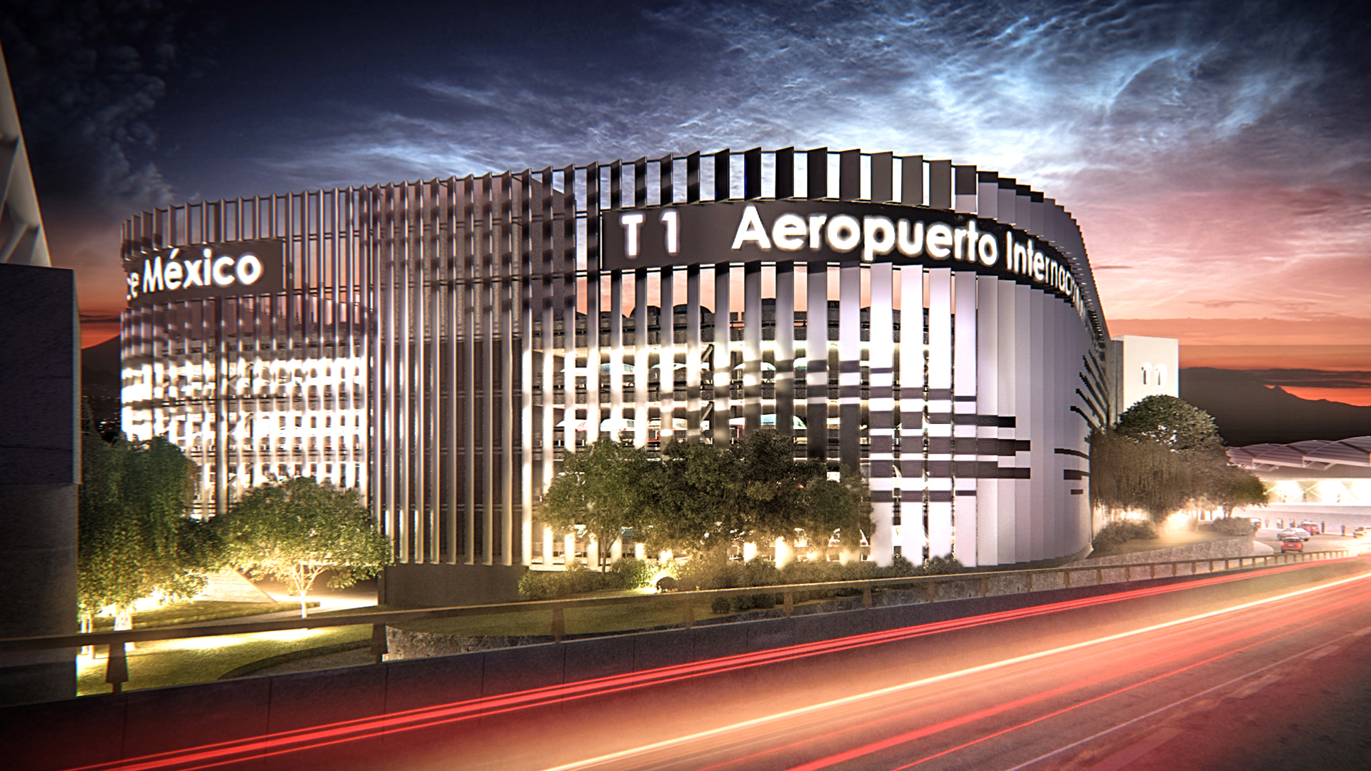 the parking structure at the main entrance of the mexico’s benito juarez international airport long stood as an eyesore reminding one of the city’s past utilitarianism; and, in 2014, the city government commissioned its beautification in the most cost-effective and appealing way possible. the design entails vertical, variably-spaced louvers surrounding the structure, which from the perspective of arriving cars provides a delightful optical effect of movement, while also allowing natural light and air to flow inside, which reduces the need for positive ventilation and artificial lighting. like a beacon, the façade extends approximately 10 ten meters above the original structure in an uplifting gesture announcing the visitor’s arrival to the airport. moreover, the new façade is freestanding and does not touch the current structure. This design allows the entire unit to be moved to the site of the new airport to be inaugurated early in the next decade. the individual louvers evoke airplane wings and are etched with a subtle cloud design, reiterating the themes of moving air and flight.