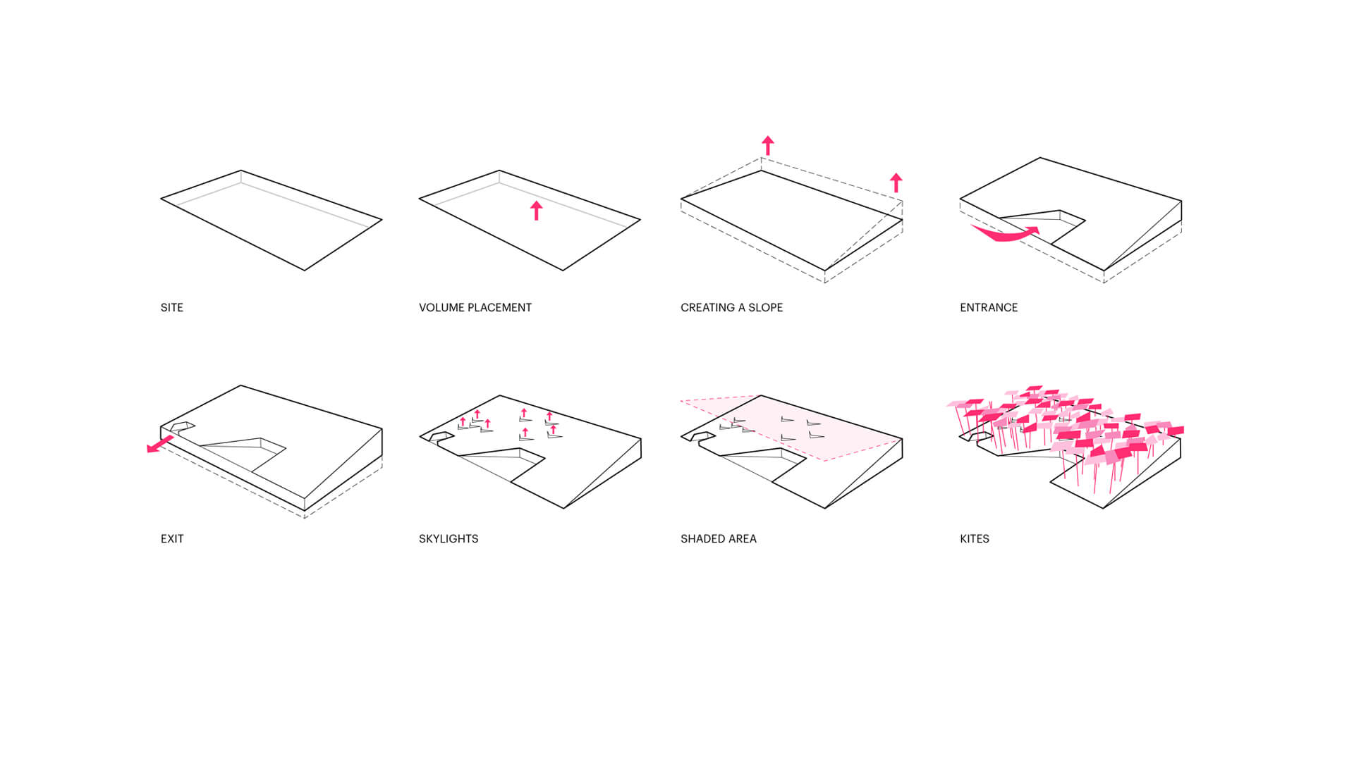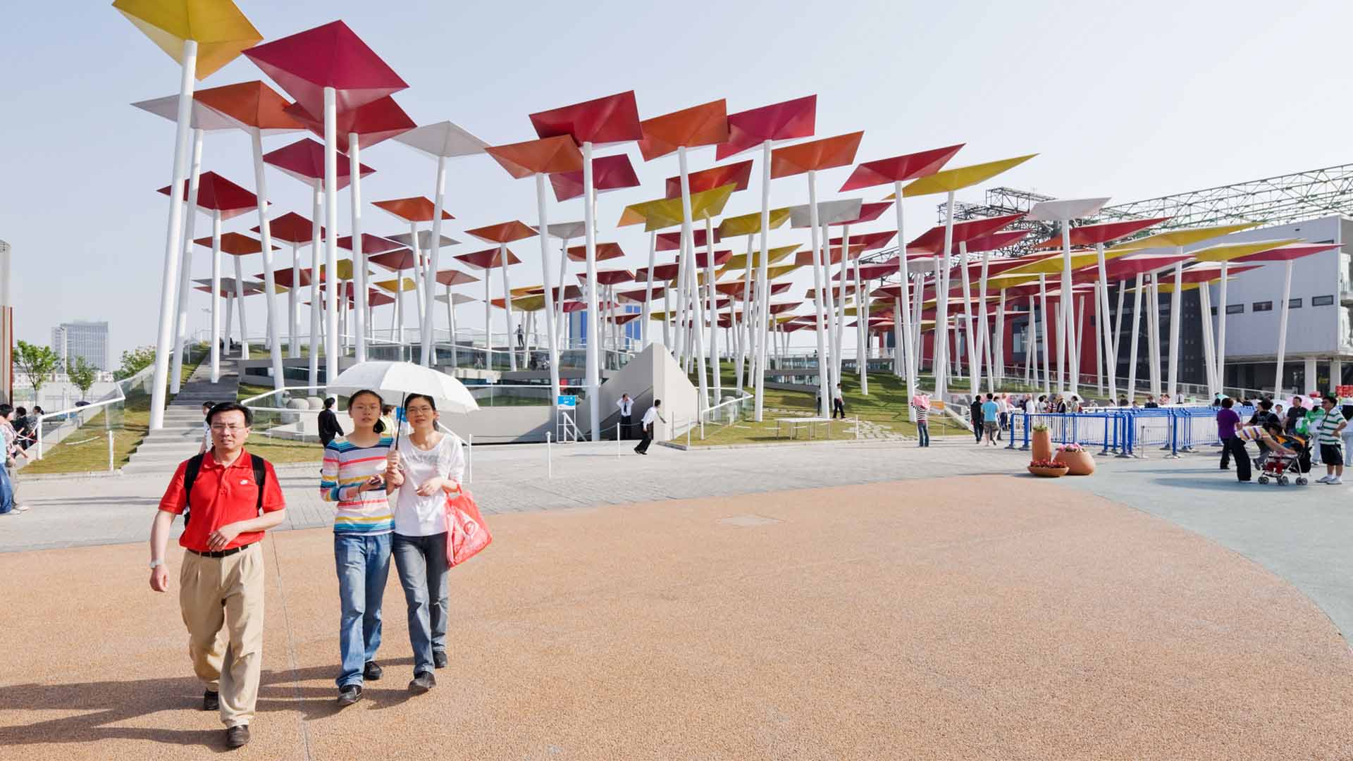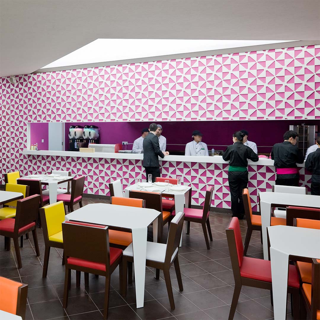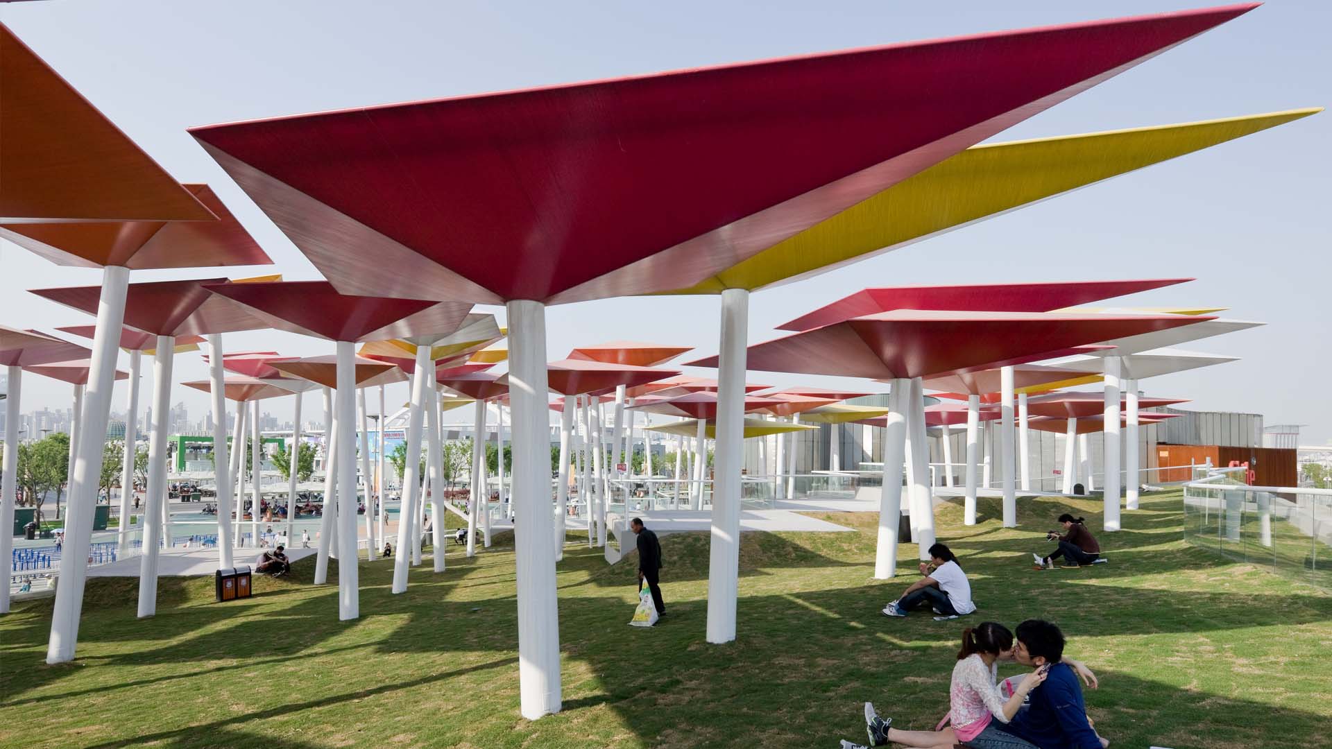 this design validates the motto of the world expo shanghai 2010 of ‘better city, better life’ showing how the restoration of urban green areas can improve city life. instead of trying to impress with an imposing building on the expo landscape, the mexican pavilion offers visitors a grass slope of 4,000 square meters and a colorful forest of kites where they can relax and play. the pavilion, ensconced beneath this slope, houses the permanent and temporary exhibition space, as well as a restaurant, cultural museum and museum shop. the pavilion’s most distinctive design feature is the panoply of colorful kites, a children’s favorite in both mexico and china, that while delighting the heart and eye provide much needed shade.
