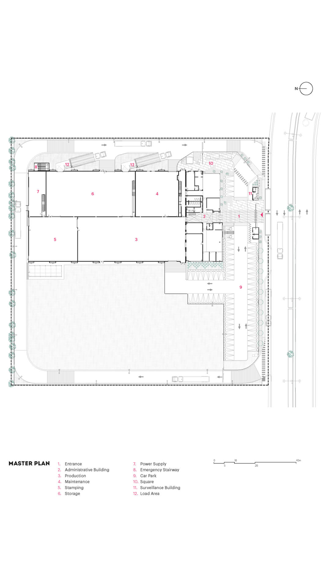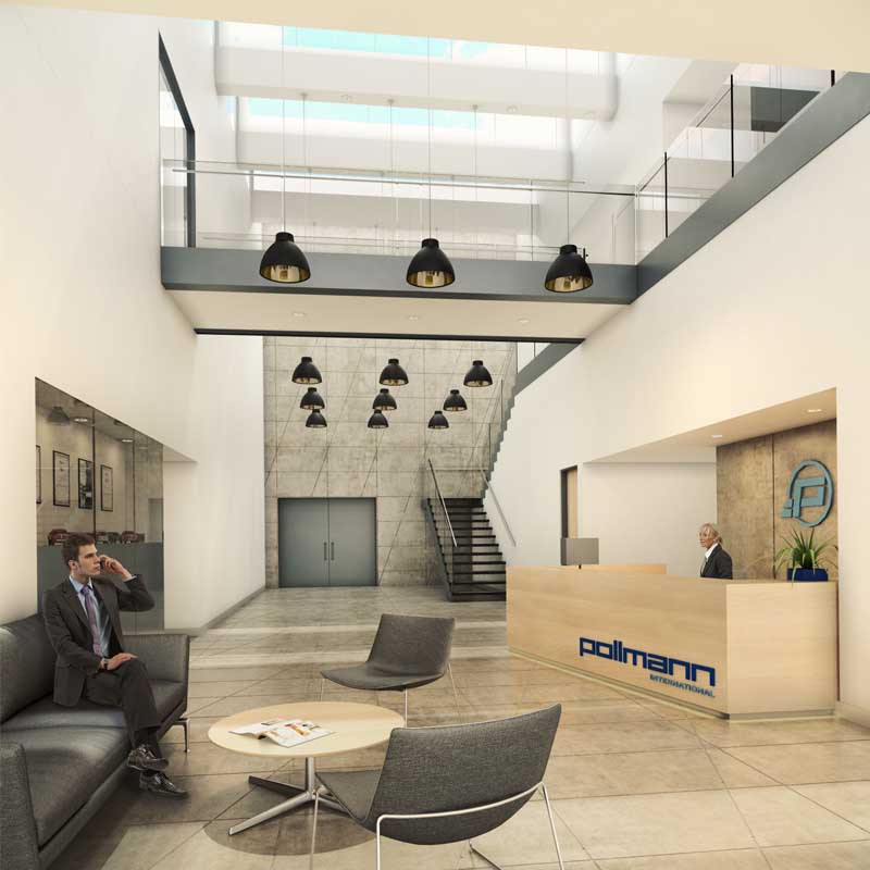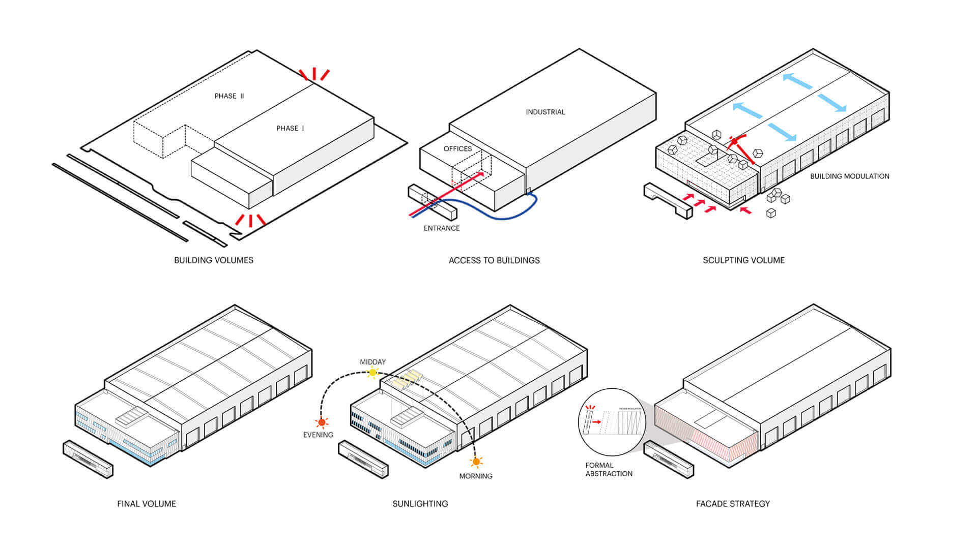 erected on 15,000 m² in the san miguel business park on the outskirts of the city of san miguel de allende, the pollmann project constellates a signature administrative building, industrial nave and campus access station. in accord with the client’s business objectives and space limitations of the site, iconico’s design optimizes natural lighting, materiality and local vegetation. in a reinterpretation of the company’s logo, the façade is conceived as a sort of architectural monogram. the project strikes a balance between design intention, functionality and budget, achieving attractive, pleasant spaces in which people and productivity thrive.